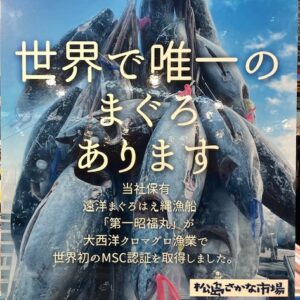 「松島さかな市場」では「お食事処」・「土産店」があり、「ネット販売」もしています。漁船(昭福丸)が漁獲したマグロは都内三ツ星店やホテルへもおろしています。