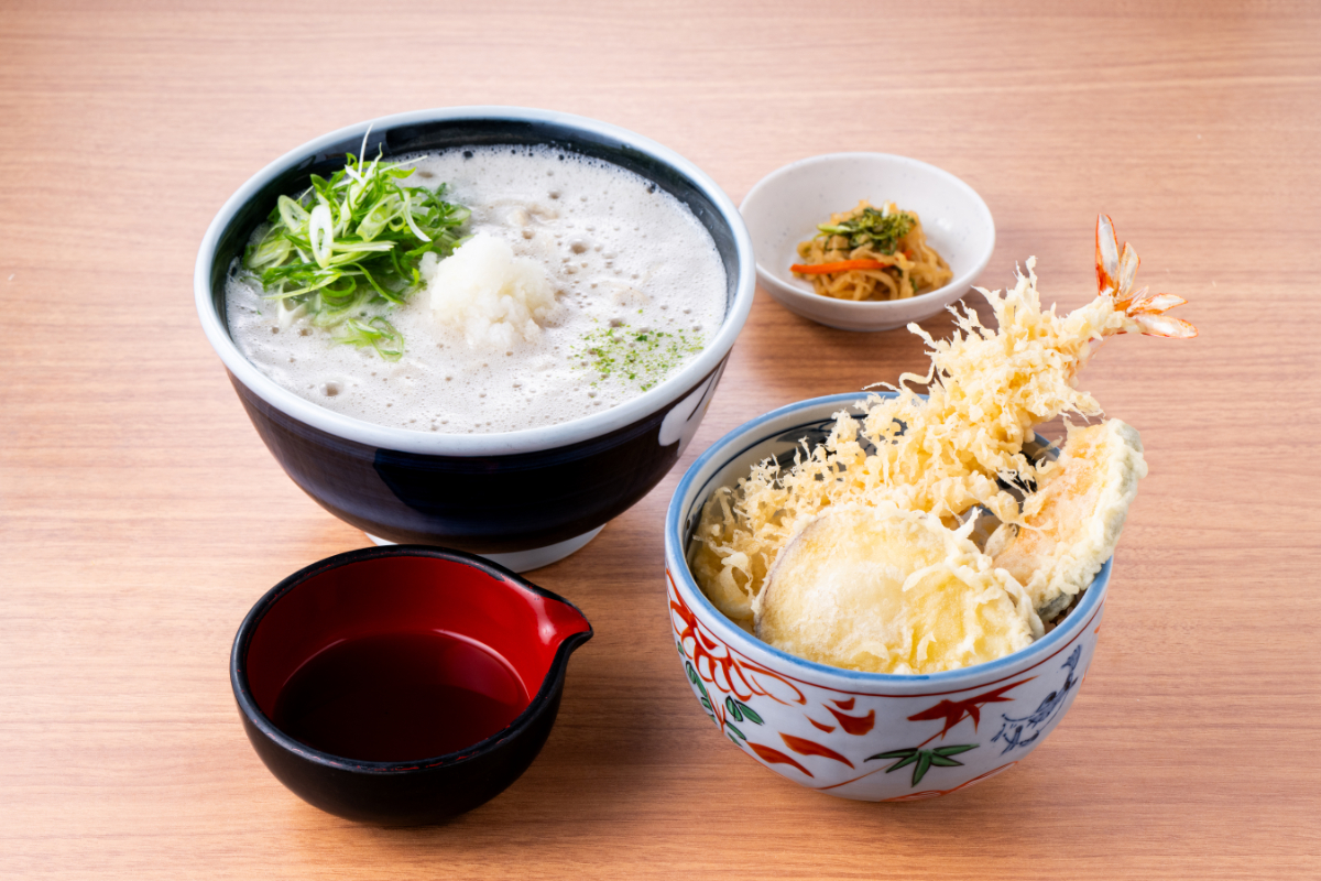 そば吉の出汁は天然風味そのままの一番出汁のみを使用。各店でかつを節を削り、その節をでじっくりと時間をかけて煮詰め、濃厚な味わいに仕上げています。食材本来の味を限界まで引き出すことにより、極上の出汁が出来上がります。
